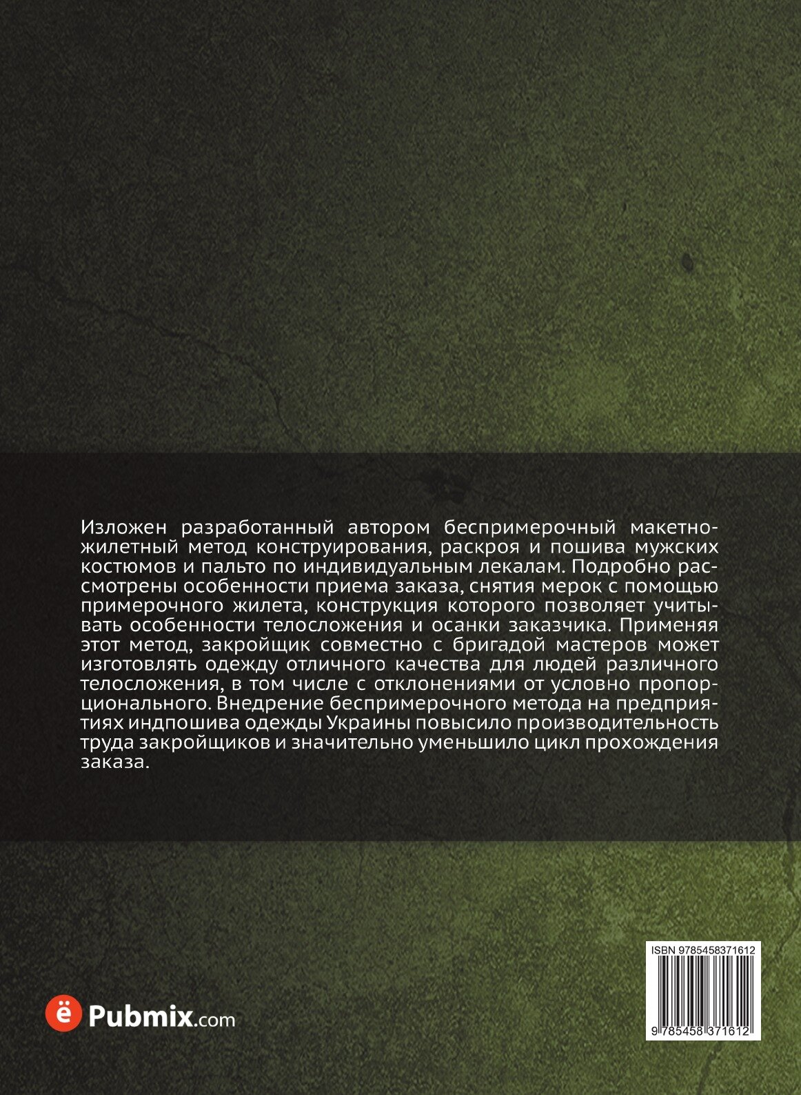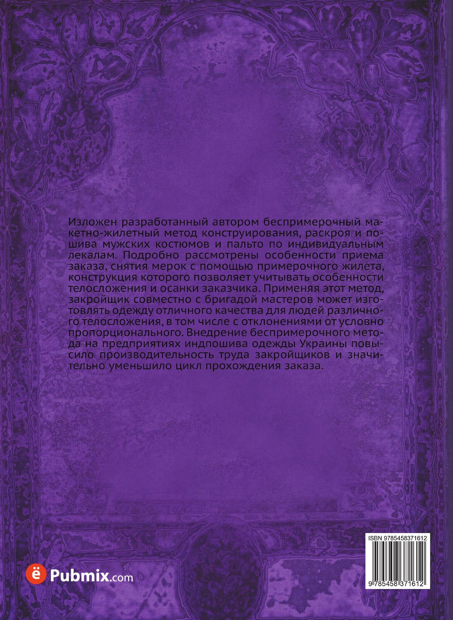 Изложен разработанный автором беспримерочный макетно-жилетный метод конструирования, раскроя и пошива мужских костюмов и пальто по индивидуальным лекалам. Подробно рассмотрены особенности приема заказа, снятия мерок с помощью примерочного жилета, конструкция которого позволяет учитывать особенности телосложения и осанки заказчика. Применяя этот метод, закройщик совместно с бригадой мастеров может изготовлять одежду отличного качества для людей различного телосложения, в том числе с отклонениями от условно пропорционального. Внедрение беспримерочного метода на предприятиях индпошива одежды Украины повысило производительность труда закройщиков и значительно уменьшило цикл прохождения заказа.
