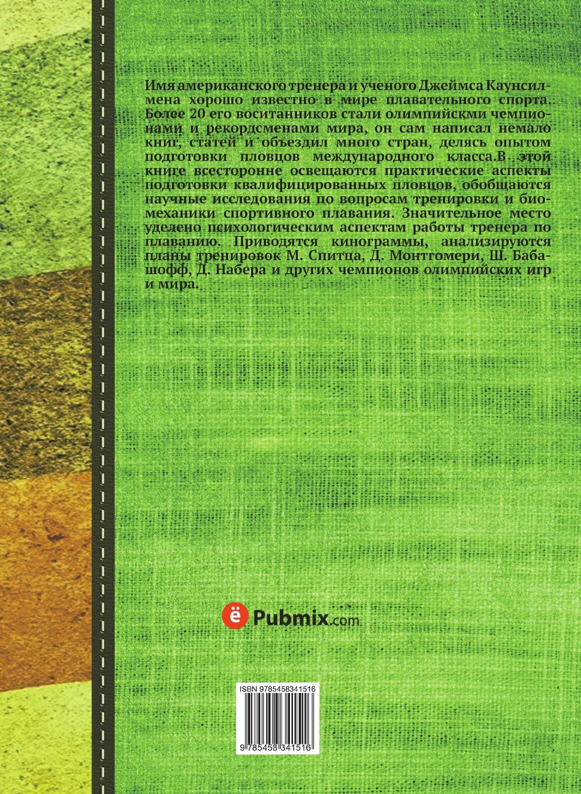 Имя американского тренера и ученого Джеймса Каунсилмена хорошо известно в мире плавательного спорта. Более 20 его воситанников стали олимпийскми чемпионами и рекордсменами мира, он сам написал немало книг, статей и объездил много стран, делясь опытом подготовки пловцов международного класса.В этой книге всесторонне освещаются практические аспекты подготовки квалифицированных пловцов, обобщаются научные исследования по вопросам тренировки и биомеханики спортивного плавания. Значительное место уделено психологическим аспектам работы тренера по плаванию. Приводятся кинограммы, анализируются планы тренировок М. Спитца, Д. Монтгомери, Ш. Бабашофф, Д. Набера и других чемпионов олимпийских игр и мира.
