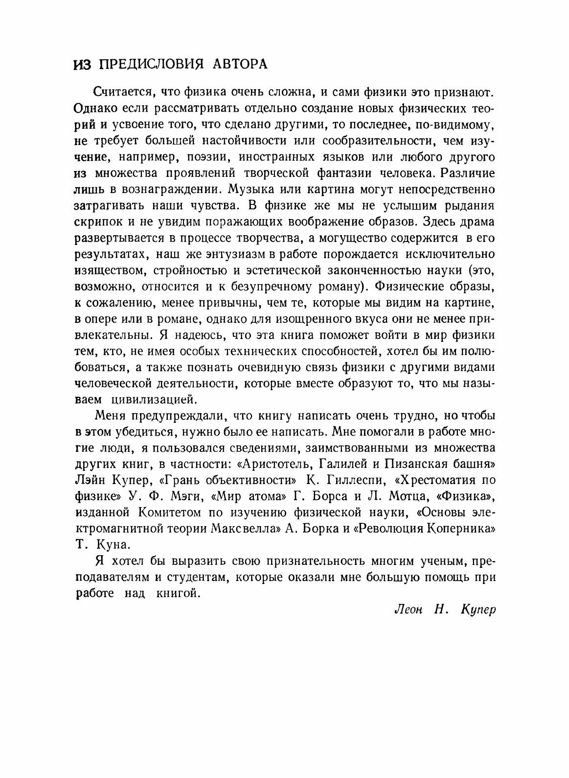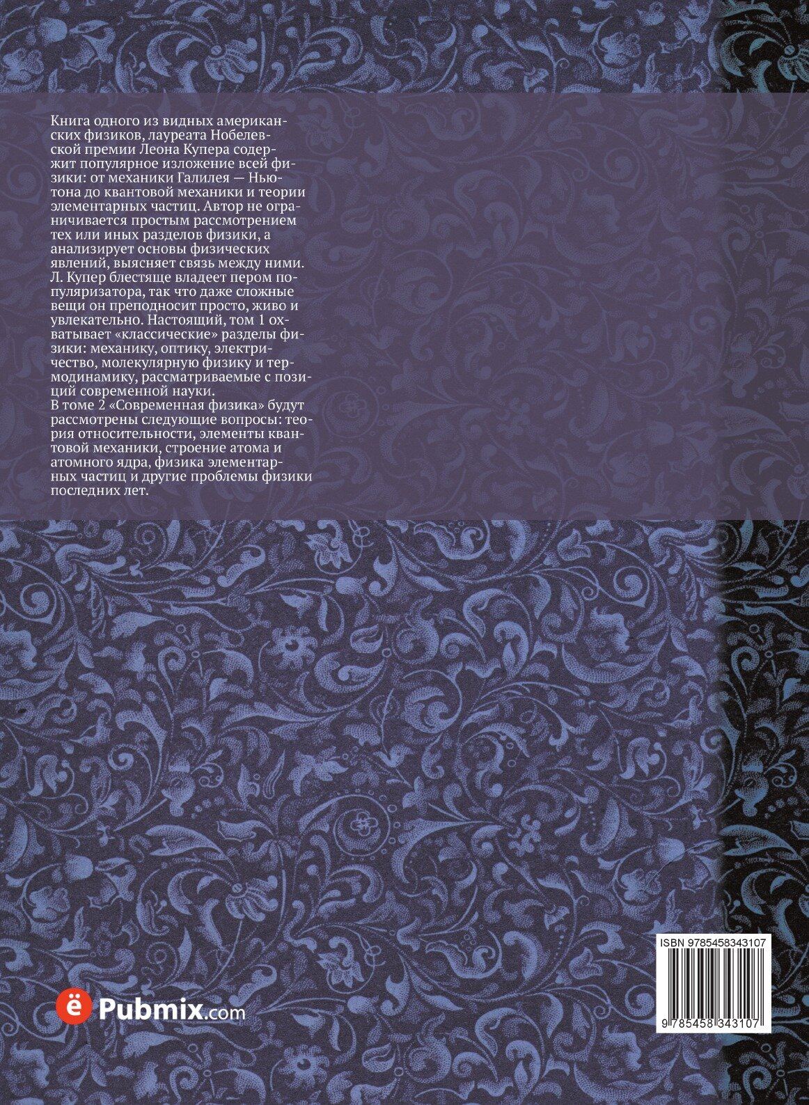 Книга одного из видных американских физиков, лауреата Нобелевской премии Леона Купера содержит популярное изложение всей физики: от механики Галилея — Ньютона до квантовой механики и теории элементарных частиц. Автор не ограничивается простым рассмотрением тех или иных разделов физики, а анализирует основы физических явлений, выясняет связь между ними. Л. Купер блестяще владеет пером популяризатора, так что даже сложные вещи он преподносит просто, живо и увлекательно. Настоящий, том 1 охватывает «классические» разделы физики: механику, оптику, электричество, молекулярную физику и термодинамику, рассматриваемые с позиций современной науки. В томе 2 «Современная физика» будут рассмотрены следующие вопросы: теория относительности, элементы квантовой механики, строение атома и атомного ядра, физика элементарных частиц и другие проблемы физики последних лет.