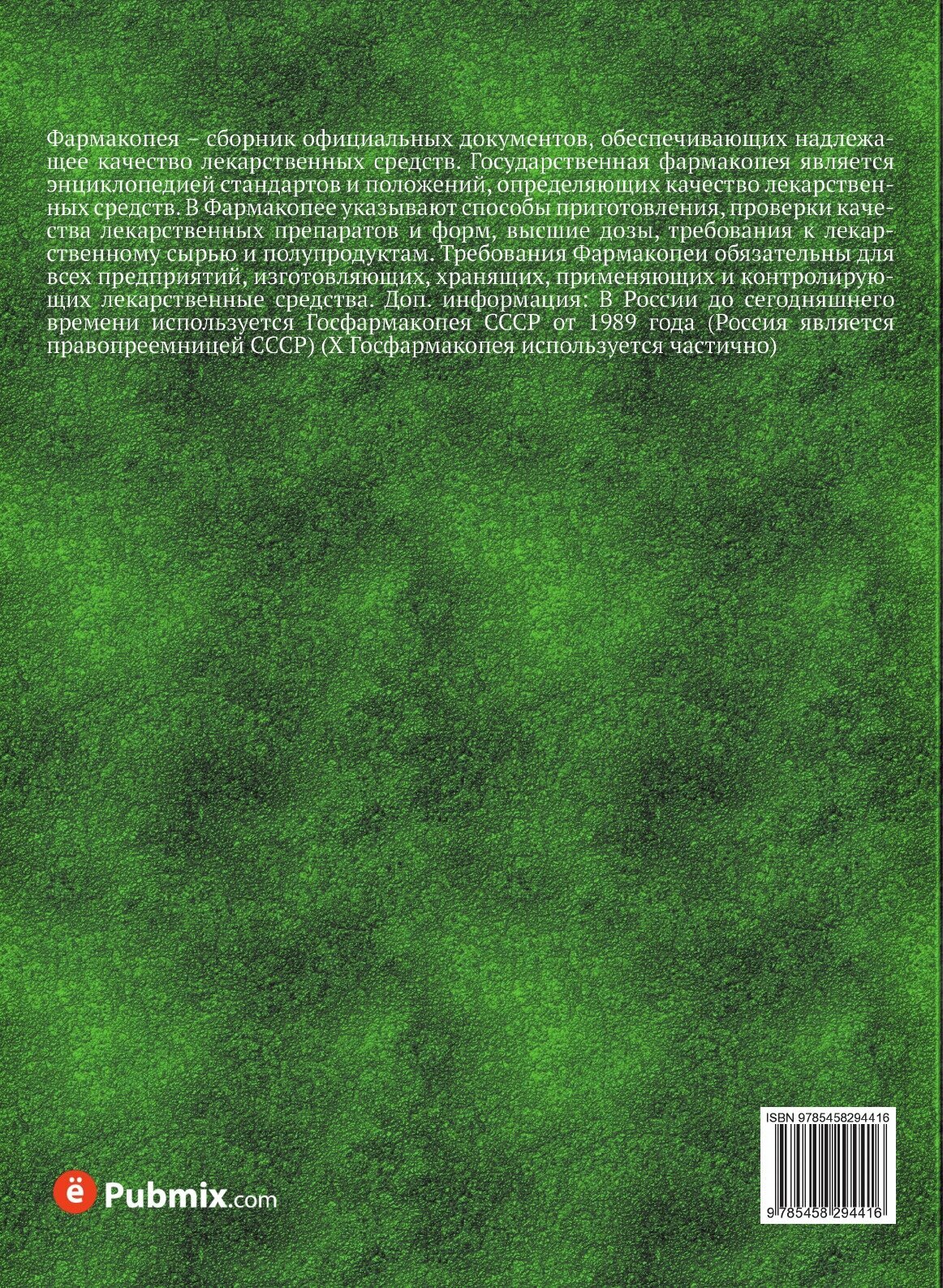 Фармакопея – сборник официальных документов, обеспечивающих надлежащее качество лекарственных средств. Государственная фармакопея является энциклопедией стандартов и положений, определяющих качество лекарственных средств. В Фармакопее указывают способы приготовления, проверки качества лекарственных препаратов и форм, высшие дозы, требования к лекарственному сырью и полупродуктам. Требования Фармакопеи обязательны для всех предприятий, изготовляющих, хранящих, применяющих и контролирующих лекарственные средства.Доп. информация: В России до сегодняшнего времени используется Госфармакопея СССР от 1989 года (Россия является правопреемницей СССР)(X Госфармакопея используется частично)