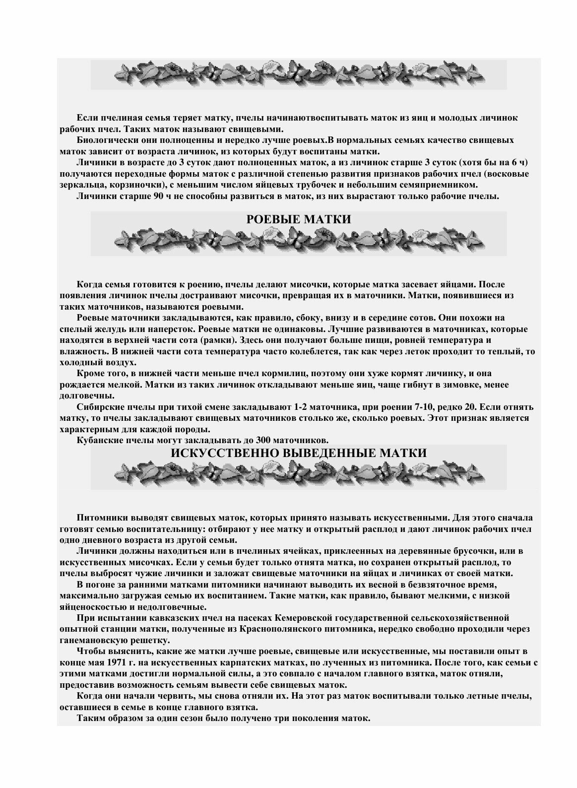 Книга по пчеловодству - Уход за пчёлами в Сибири. В. Г. Кашковский. Свищевые матки сравнение.