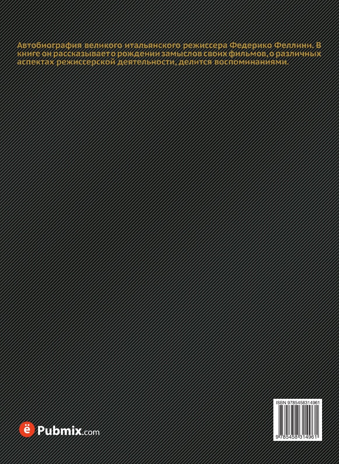 Автобиография великого итальянского режиссера Федерико Феллини. В книге он рассказывает о рождении замыслов своих фильмов, о различных аспектах режиссерской деятельности, делится воспоминаниями.