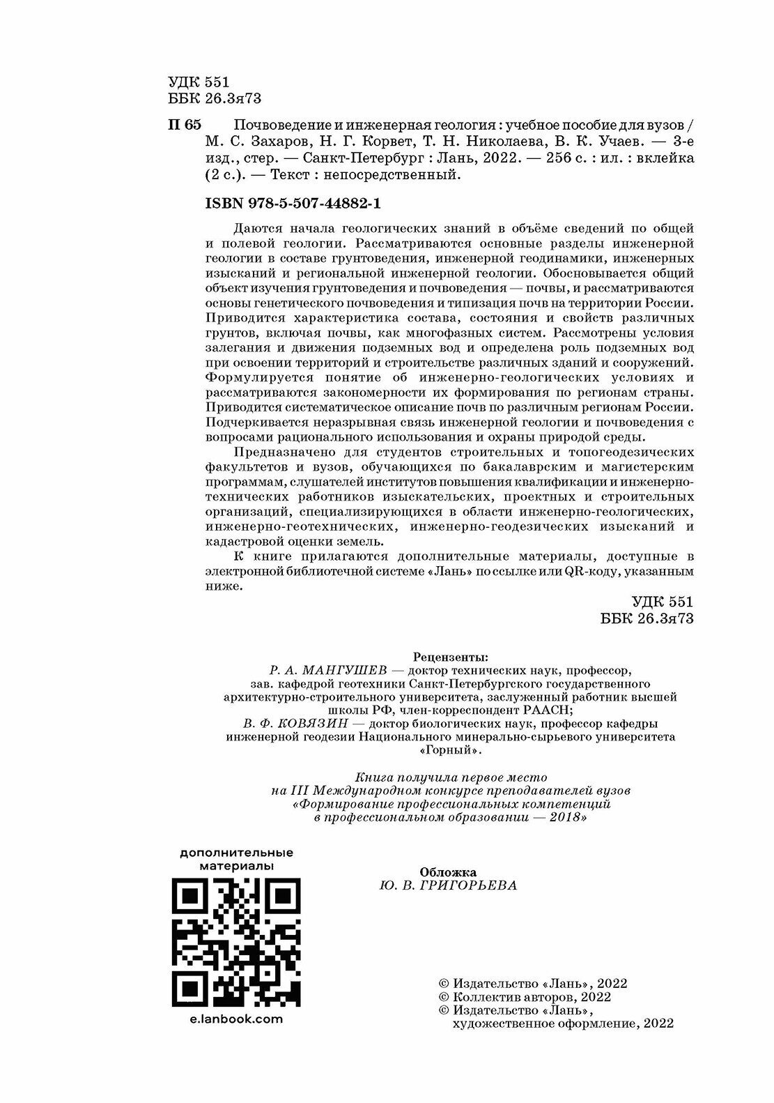 Почвоведение и инженерная геология. Учебное пособие для вузов (Захаров Михаил Сергеевич, Корвет Надежда Григорьевна, Николаева Татьяна Николаевна); Лань, 2022