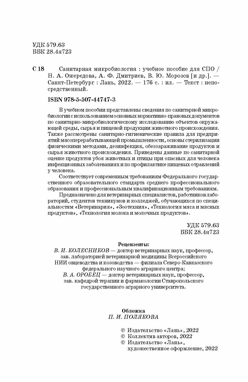 Книга: Санитарная микробиология (Морозов Виталий Юрьевич, Ожередова Надежда Аркадьевна, Дмитриев Анатолий Федорович); Лань, 2022