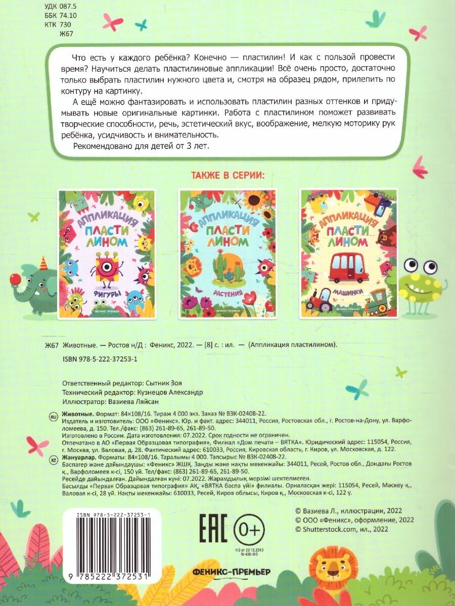 Животные Аппликация пластилином (Сытник З. (ред.)); Феникс-Премьер, 2024