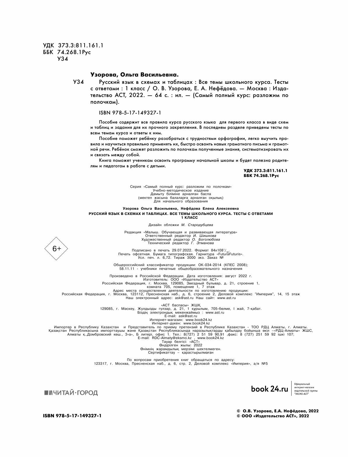 Русский язык в схемах и таблицах. Все темы школьного курса 1 класса с тестами. (Узорова Ольга Васильевна, Нефедова Елена Алексеевна); ИЗДАТЕЛЬСТВО "АСТ", 2022