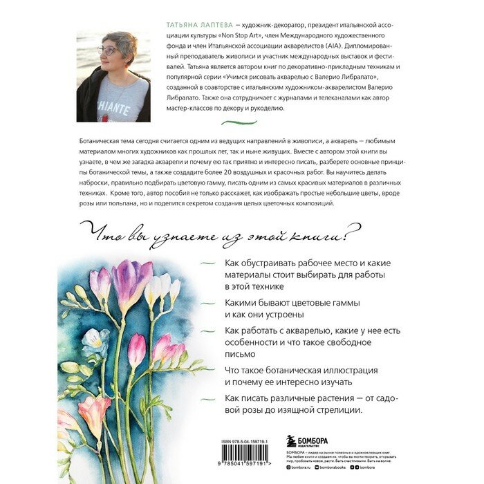 Откройте для себя удивительный мир акварельной ботанической живописи вместе с Татьяной Лаптевой - дипломированным преподавателем и автором книг популярной серии "Учимся рисовать акварелью с Валерио Либралато".