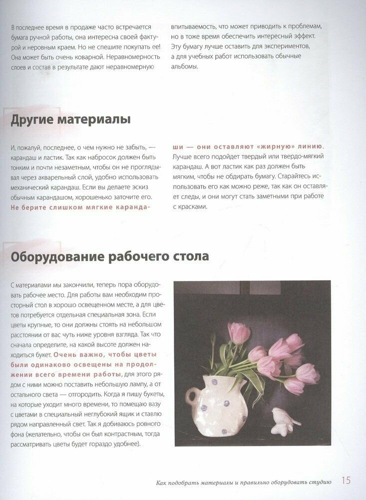 Должна заметить, что одновременно приобрела две книги с уроками рисования акварелью флористики. И эта понравилась больше. Она более информативная в части возможных акварельных техник, да и сами рассмотренные примеры рисования более разнообразные и полные. Прекрасная книга, замечательное оформление, наглядные иллюстрации. В конце книги имеются готовые наброски для использования. Очень советую.
