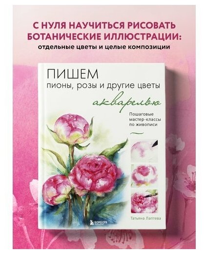 Пишем пионы розы и другие цветы акварелью. Пошаговые мастер-классы по живописи (Лаптева Татьяна Евгеньевна); Эксмо, 2022