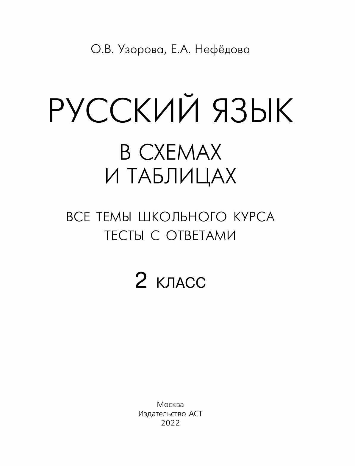 Русский язык в схемах и таблицах. Все темы школьного курса 2 класса с тестами. (Узорова Ольга Васильевна, Нефедова Елена Алексеевна); ИЗДАТЕЛЬСТВО "АСТ", 2022