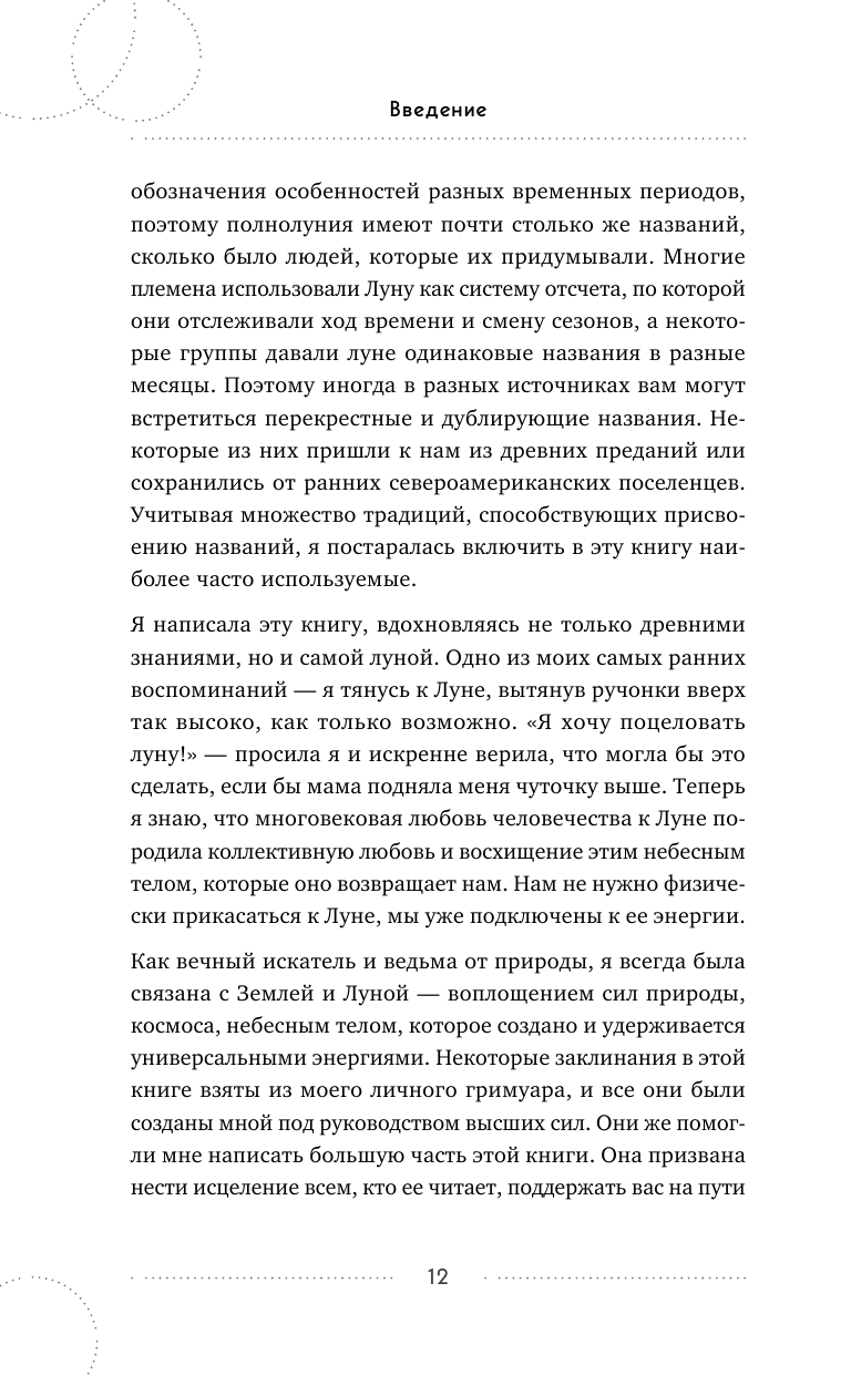 Внутри вы найдете информацию о взаимосвязи луны и всего живого, рассказ о видах гаданий, общие, но при этом очень удачные сводки о таро, его мастях, символах, удобные сводные таблицы, информацию о подготовке к ритуалам, как заряжать кристаллы,какому дню недели присуща та или энергия, в каком месяце луна снежная, а в каком осетровая? В каждой главе, помесячно приведен рассказ о луне, характерном празднике колеса года, расклады и ритуалы и медитации месяца.
