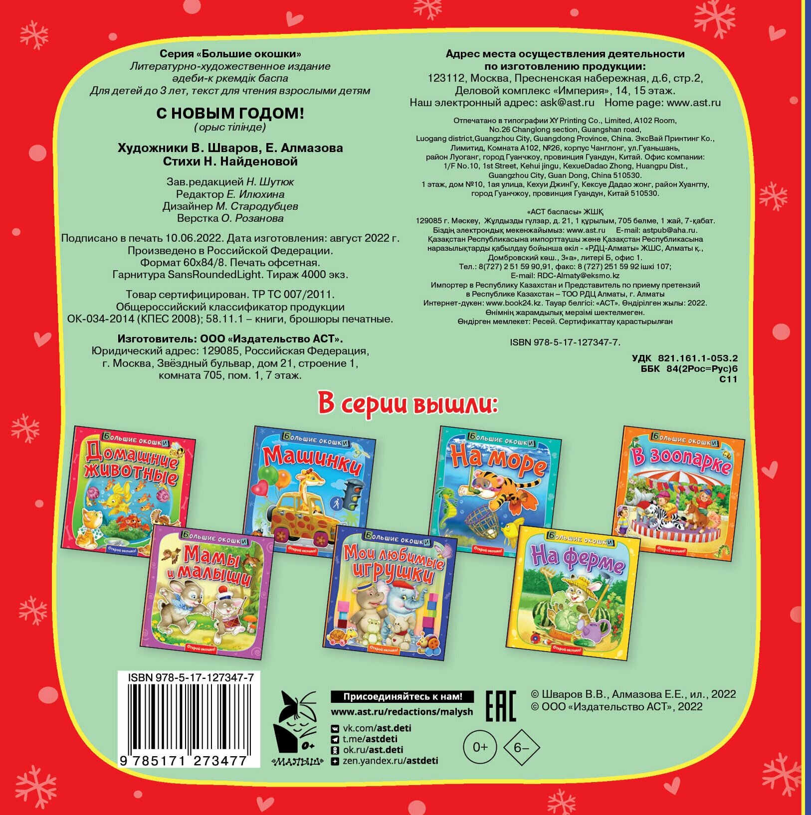 Эта книжка с большими окошками на каждом развороте станет первым лучшим другом для малыша! Новогодние стихи и весёлые картинки, а также интересные задания надолго займут ребёнка и подарят ему незабываемые впечатления.