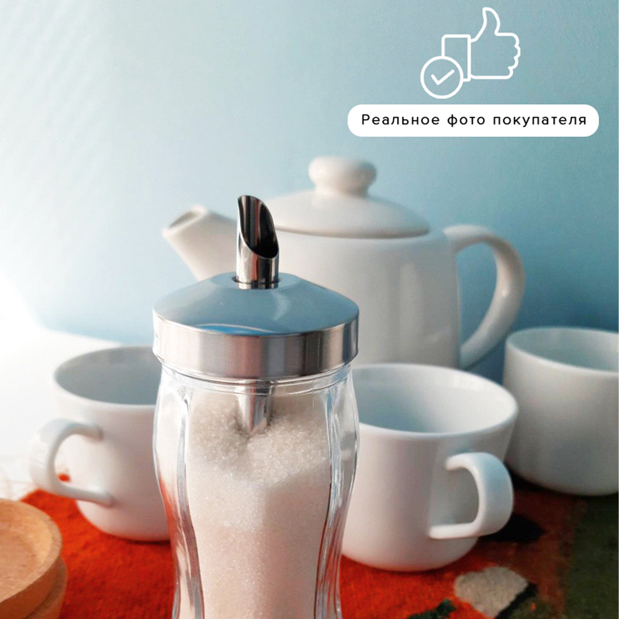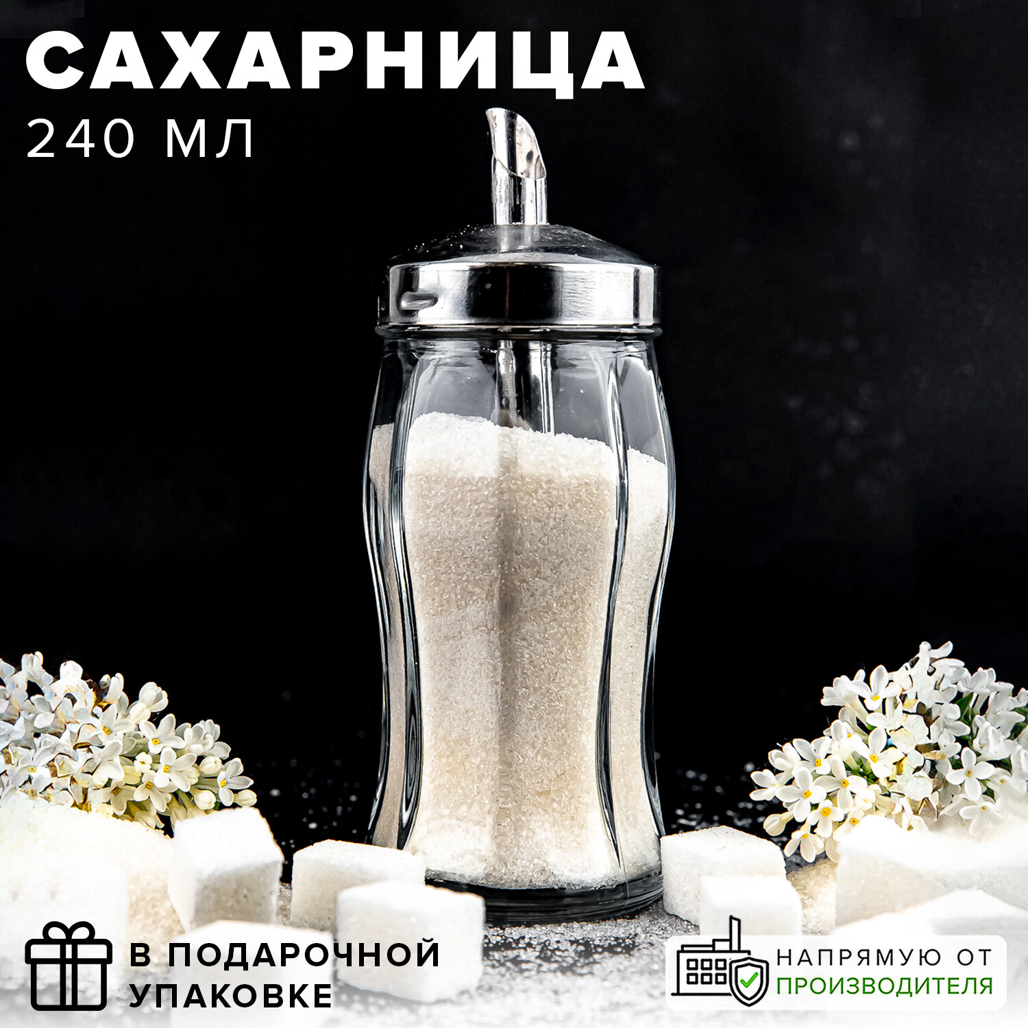 Стеклянная сахарница с дозатором 240 мл бренда Pasabahce. Высота прозрачной емкости 130 мм. Диаметр верха 55 мм, дна 66 мм. Изготовлено из натрий-кальций-силикатного стекла. Поставляется в брендированной упаковке. Прозрачная емкость из стекла выполнена из крепкого надежного стекла. Крышка обладает удобным дозатором для высыпания сахара без помощи ложки. Ребристая поверхность на внешних стенках сахарницы обеспечит комфорт использования посуды, такая сахарница не будет выскальзывать из пальцев. Стеклянная сахарница будет уместна на любой кухне в квартире и дома, на даче и в саду или в кафе. Емкость из стекла - отличный выбор для полезного и практичного подарка на любой праздник: новый год и Рождество, 8 марта и день рождения, 14 февраля и новоселье для мамы и жены, подруги и девушки, бабушки и сестры, ваших близких людей и родственников, коллег и друзей.