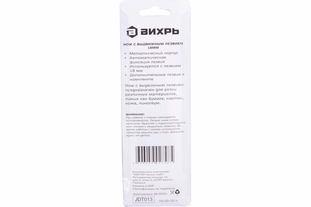 Нож Вихрь с выдвижным лезвием 18мм 73/10/10/4