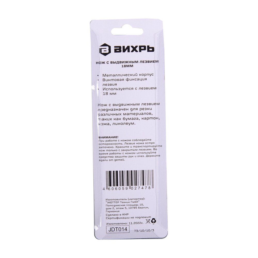 Нож Вихрь винтовой фиксатор с выдвижным лезвием 18мм