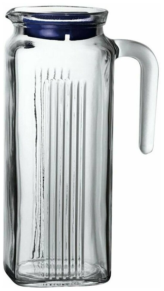 Кувшин стеклянный 1000 мл с синей пластиковой крышкой бренда Pasabahce. Стеклянный кувшин с пластиковой крышкой идеально подойдет для любых напитков воды, сока, лимонада. Благодаря наличию носика жидкость удобно наливать в чашку, а прочная ручка обеспечит комфорт при поднятии и переносе кувшина. Крышка защитит содержимое кувшина от попадания пыли. Объем 1000 мл. Высота 220 мм.