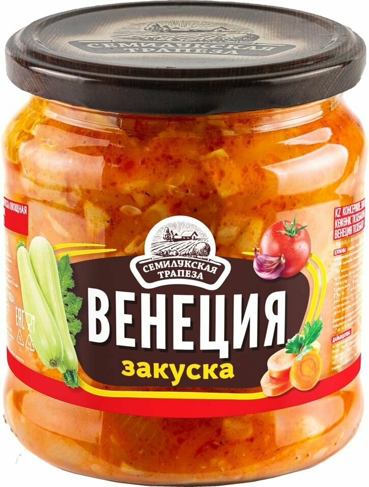 Сервис сравнения цен СкидкаГИД предлагает сравнить цены на товар «ЗакускаСемилукская Трапеза Овощная Венеция 460г»