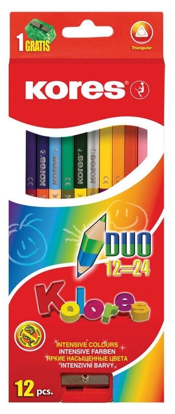 Набор карандашей Kores двусторонние с точилкой 24 цвета 12шт