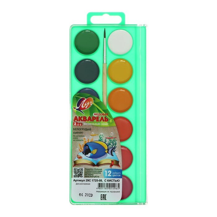 Краски акварельные Луч Zoo с кистью 12 цветов