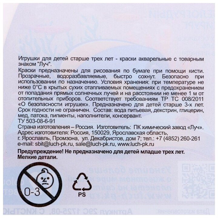 | Серия | Краски акварельные 12 цветов (9-14) |