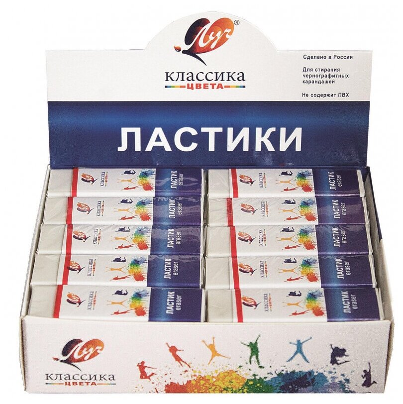 Ластики изготовлены из термопластичной резины. Предназначены для удаления надписей и рисунков, сделанных чернографитными карандашами любой твёрдости с любого типа бумаги (тетрадная, альбомная, чертёжная бумага, акварельная бумага).Ластики ТМ «Луч» обеспечивают качественное стирание. Не оставляют следов карандаша, не размазывают следы от графита по бумаге, не требуют усилий при стирании и не рвут бумагу.Ластики упругие, не ломаются при использовании;Не содержат ПВХ;Не оставляют крошек при стирании;Ластики имеют эргономичную форму, их удобно держать в руке;Имеют приятные тактильные ощущения;Безопасны при использовании по назначению;Срок годности не ограничен.