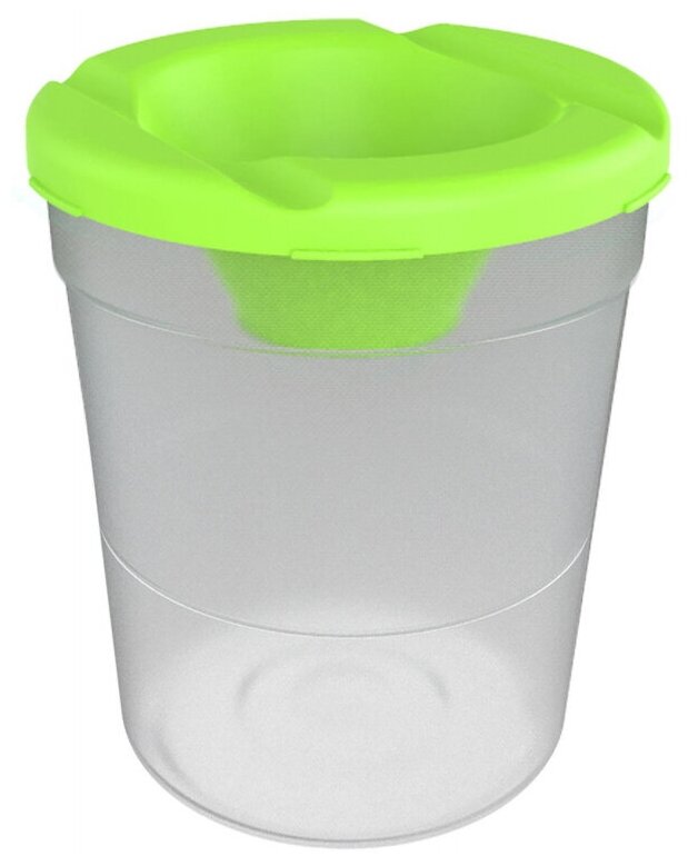 - Стакан вмещает в себя большой объём воды, что позволяет лучше промывать кисть и не так часто менять окрашенную воду.