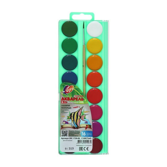 Краски акварельные Луч Zoo с кистью 16 цветов