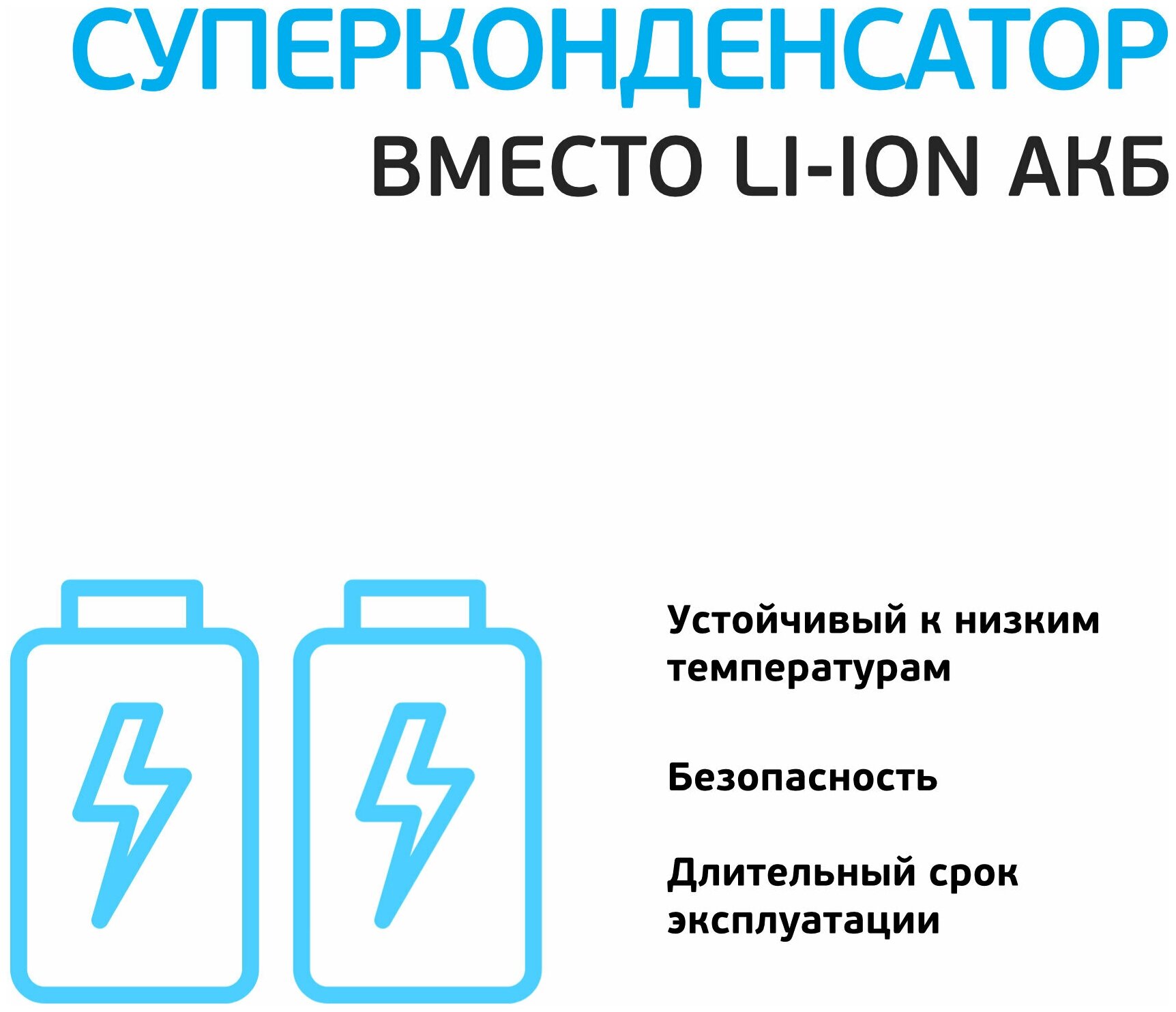 Поставляется с конденсатором вместо аккумулятора. Конденсаторы более термостойкие и, как правило, более долговечны, чем батареи. Он помогает решить многие типичные проблемы, включая перегрев, опасность взрыва аккумулятора, потерю последних файлов.