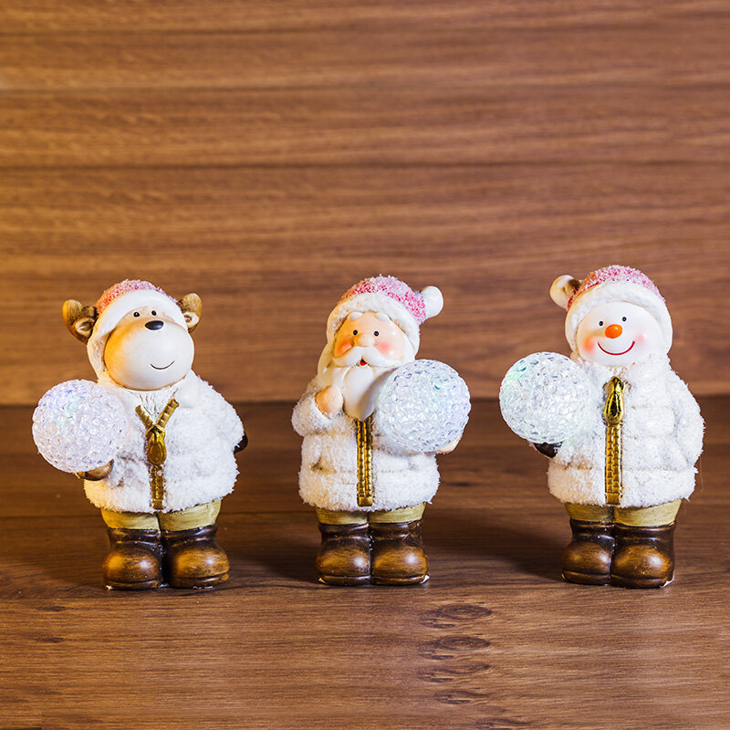 Керамические фигурки со светодиодной подсветкой " Дед Мороз, Снеговик и Олененок" 10*9*13 см - это не просто декоративное украшение! Это, в первую очередь, функциональный предмет, способный преобразить домашний или офисный интерьер, создать уют и погрузить в настоящую атмосферу праздника. Отметим, что светодиоды имеют бесспорное преимущество перед ламповыми, поскольку ресурс светодиодов составляет 100 000 часов. Технические характеристики: цвет свечения: RGB, питание от 2-х батареек типа LR44 (батарейки в комплекте), температурный режим от -20 до +40, степень защиты IP 20. Керамическая фигурка - полезное приобретение, оригинальный подарок и незабываемые эмоции для детей и взрослых!