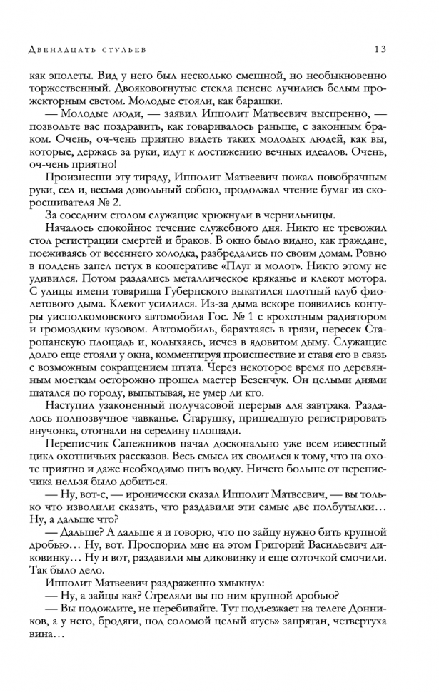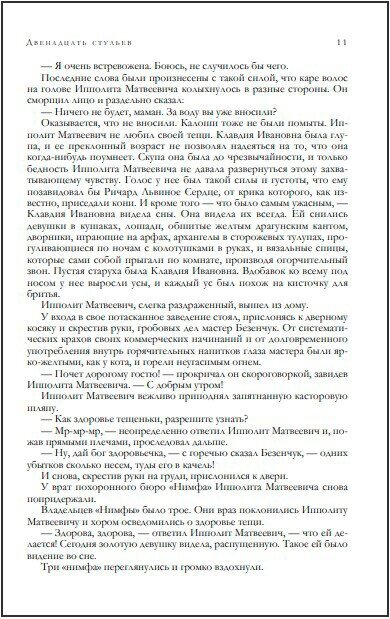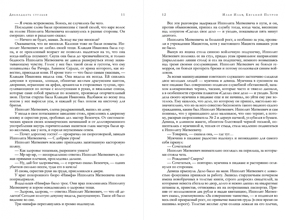 Как здорово, что есть такие коллекционные издания, включающие в себя не одно, а сразу несколько произведений любимых авторов. Похождения Остапа Ибрагимовича сотоварищи можно читать и перечитывать не один раз, это лучшее лекарство от хандры и скуки, я получил огромное удовольствие от чтения. Яркий, острый, меткий язык авторов мастерски высмеивает человеческие пороки и страсти, и не даёт заскучать. Но главный сюрприз этого тома в том, что здесь есть ещё прекрасные произведения - замечательный очерк о путешествии в Америку, написанный опять же с присущими авторам сатирой и юмором, и абсолютно новое для меня произведение о новой Шахерезаде - здесь тоже есть над чем посмеяться, одни говорящие фамилии героев чего стоят. Издание очень качественное, и я рад, что являюсь его обладателем, всем искренне советую.