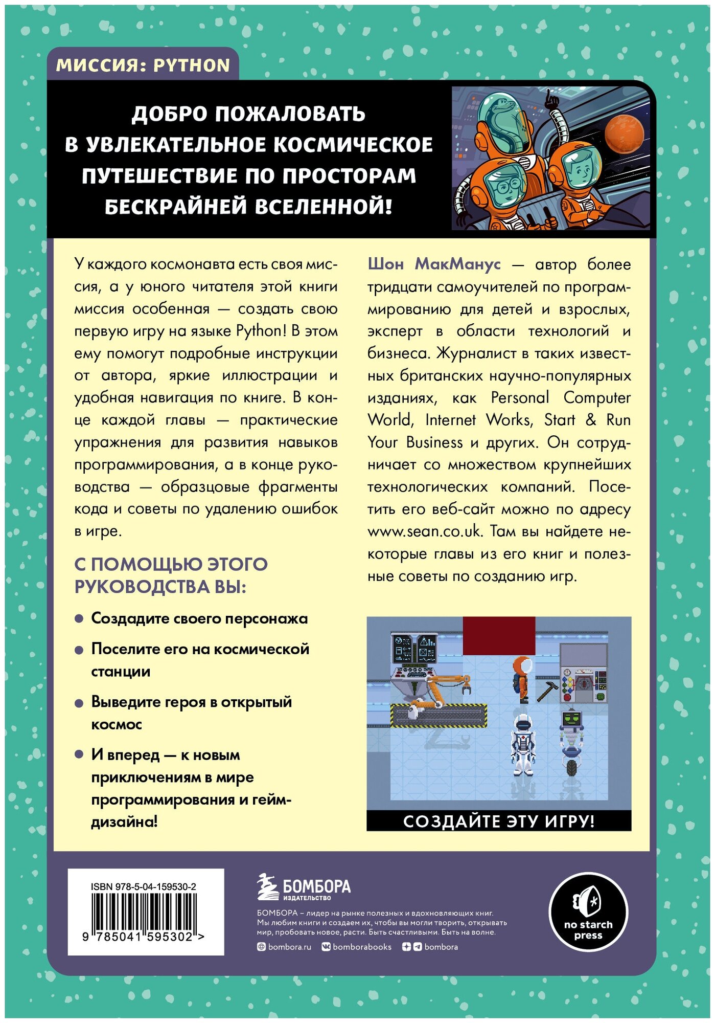 На сегодняшний день товар «Книга: Миссия: Python. Создаем игры вместе с детьми (Макманус Шон); ООО "Издательство "Эксмо", 2022» можно купить с кешбеком в 3 магазинах: book24, Яндекс.Маркет, Буквоед