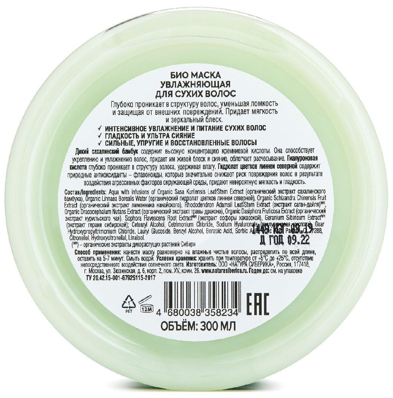 | Состав | Aqua with infusions of Organic Sasa Kurilensis Leaf/Stem Extract (органический экстракт сахалинского бамбука), Organic Linnaea Borealis Water (органический гидролат цветков линнеи северной), Organic Dracocephalum Nutans Extract (органический экстракт травы дракона), Organic Rhododendron Adamsii Leaf/Stem Extract (органический экстракт саган-дайля), Organic Schizandra Chinensis Fruit ExtractFE (органический экстракт лимонника нанайского), Organic Rhododendron Adamsii Leaf/Stem ExtractFE (органический экстракт саган-дайля), Organic Dasiphora Fruticosa Extract (органический экстракт курильского чая), Sophora Flavescens Root ExtractWH (экстракт софоры хакасской), Geranium Sibiricum ExtractWH (экстракт герани сибирской), Cetearyl Alcohol, Cetrimonium Chloride, Sodium Hyaluronate (гиалуроновая кислота), Guar Hydroxypropyltrimonium Chloride, Lauryl Glucoside, Benzyl Alcohol, Benzoic Acid, Sorbic Acid, Citric Acid, Parfum, CI 77288, Citronellol, Hydroxycitronellal, Linalool |