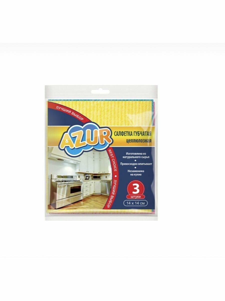 Модель: Салфетка для уборки Azur губчатая 14х16 см 3 штуки