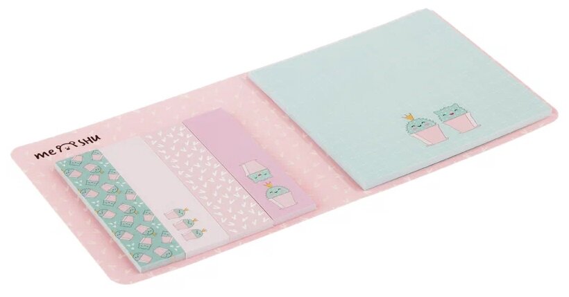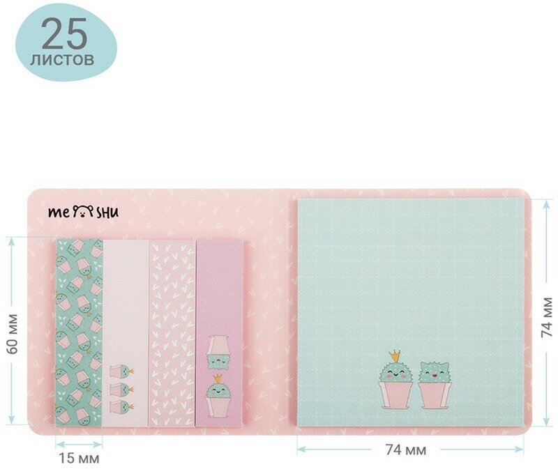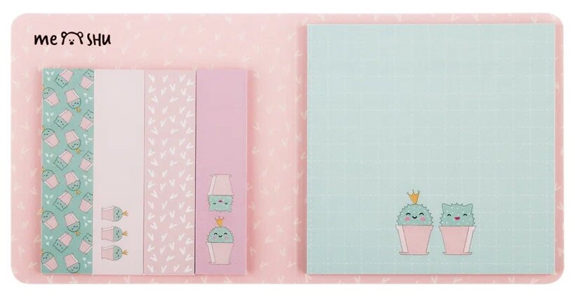 Набор канцелярии Meshu Sweet mono Catcus Флажки-закладки 60*15мм + Самоклеящиеся блоки 74*74мм 25л