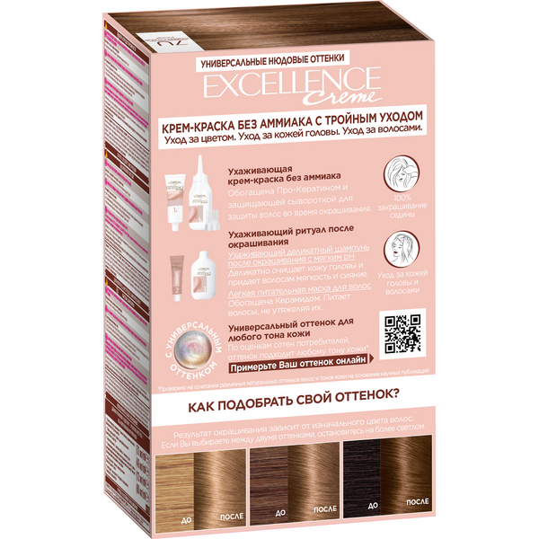 - Краска для волос L'Oreal Paris Excellence Creme универсальные нюдовые оттенки.