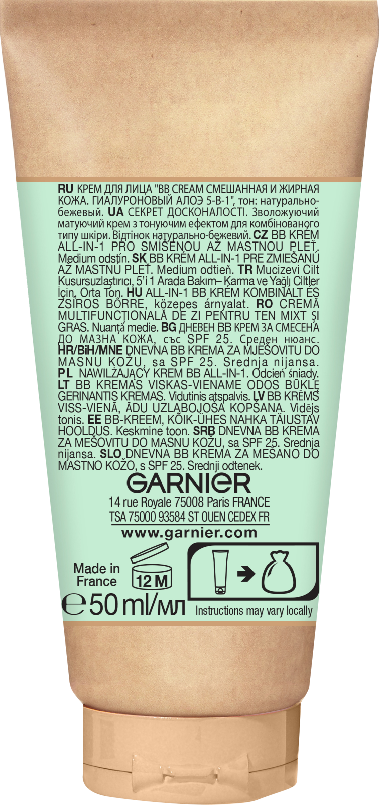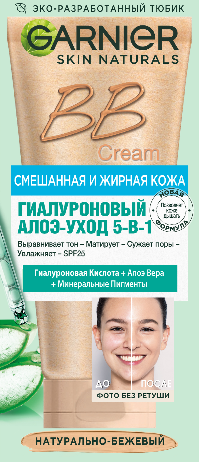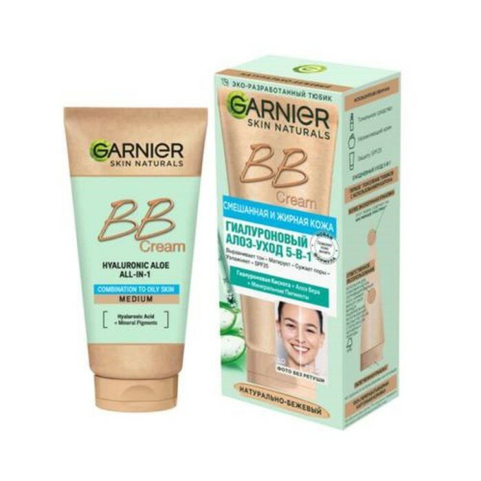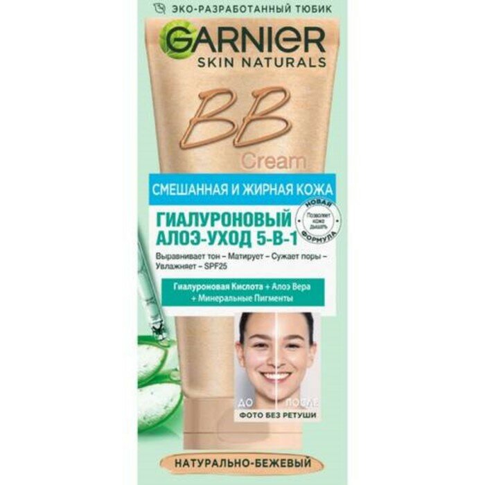 Крем для лица Garnier Skin Naturals Гиалуроновый Алоэ-уход 5-в-1 Натурально-бежевый SPF25 50мл