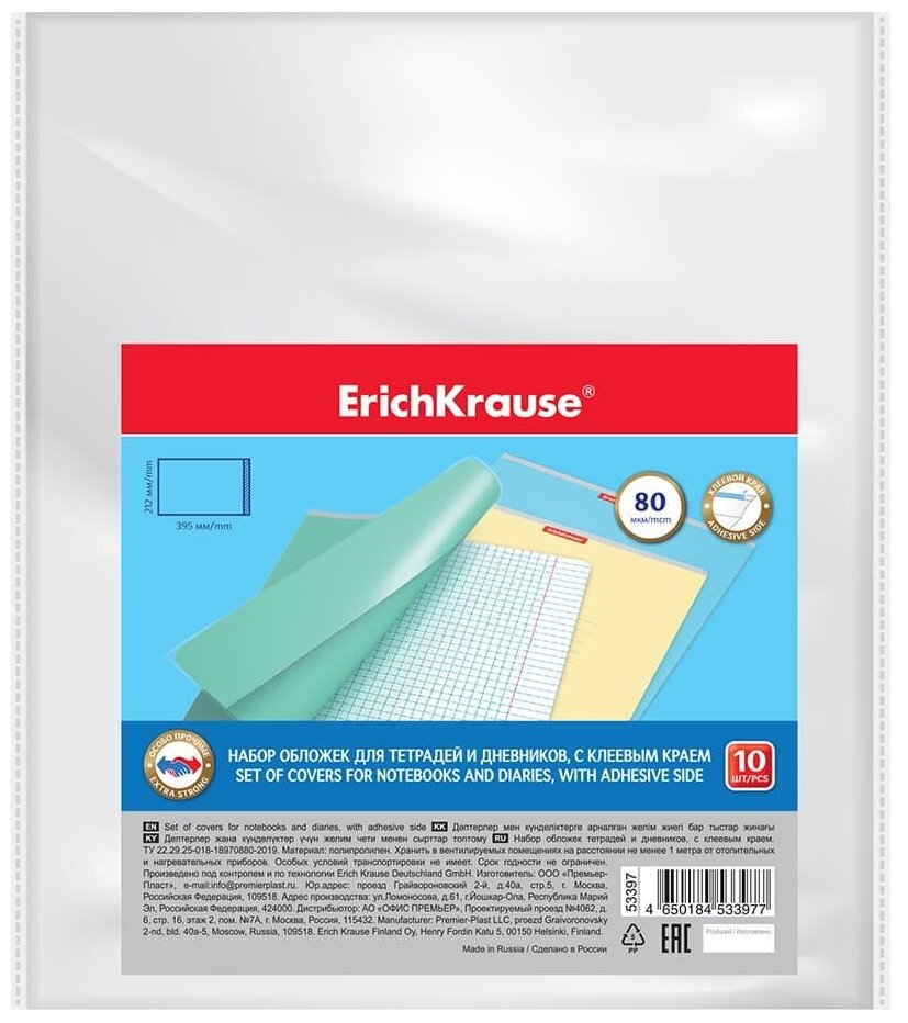 На сегодняшний день товар «Обложки для тетрадей и дневников Erich Krause Fizzy Clear с клеевым краем 212*395мм 10шт» можно купить с кешбеком в 1 магазине: Яндекс.Маркет