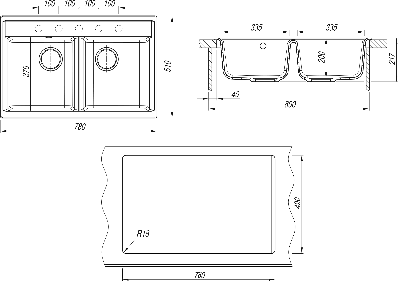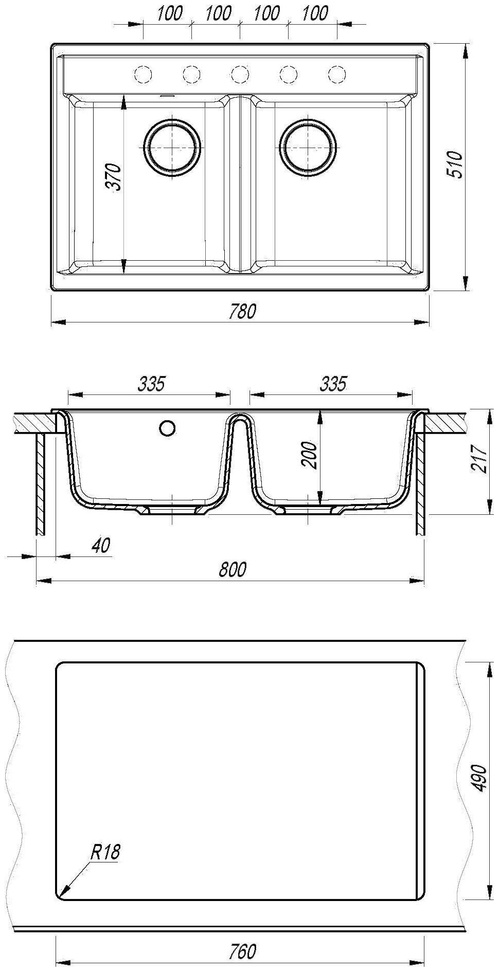 | Доп. наименование Водопад | Мойка Dr.Gans Астра 25.060.E0780.407, 780х510, 2 чаши, искусственный камень, цвет черный |