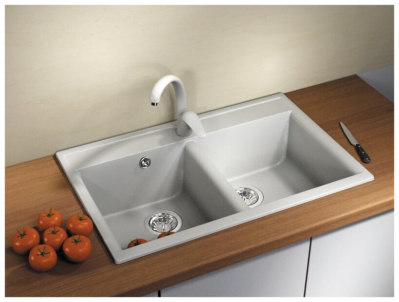 Кухонная мойка - это практичная мойка с двумя полноценными чашами. Лаконичный дизайн. Дополнительные отверстия под аксессуары.