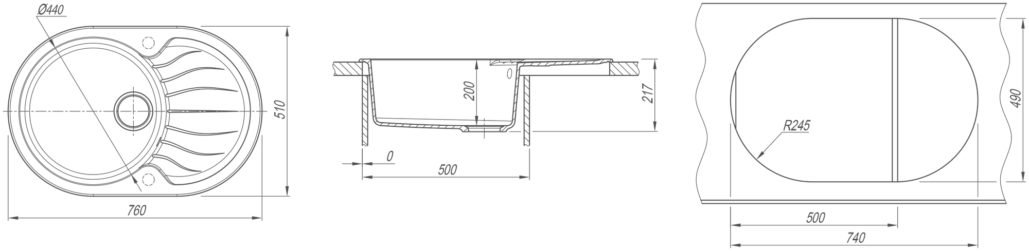 | Глубина чаши (мм) | 200 |