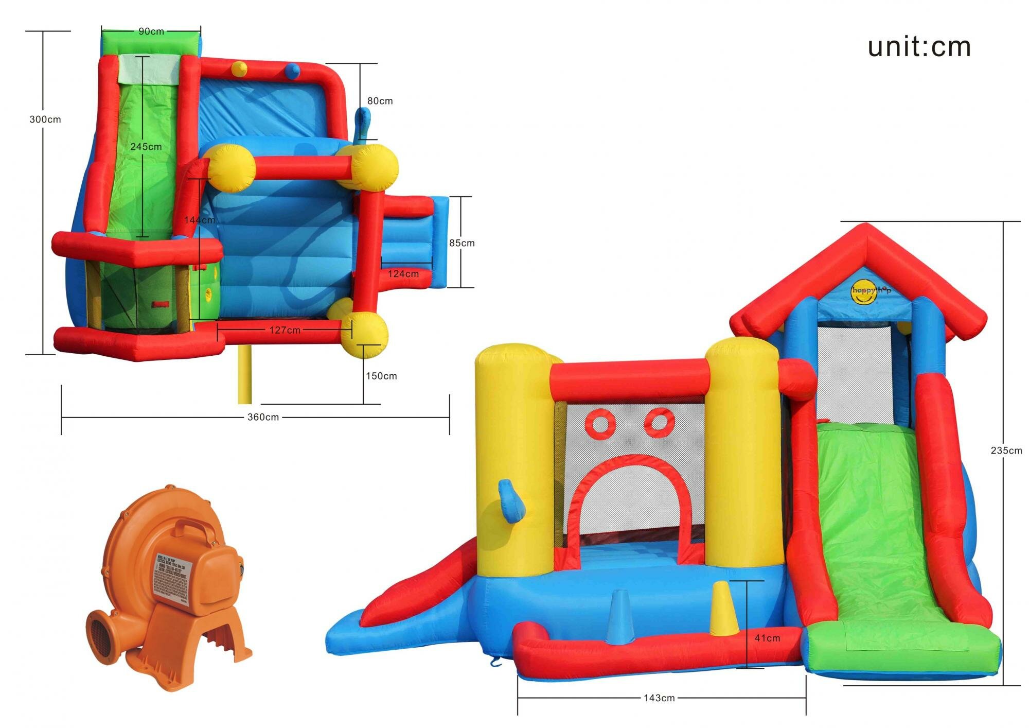 - Батут Happy Hop. Надувной игровой центр 11 в 1. Наполнение воздухом.
