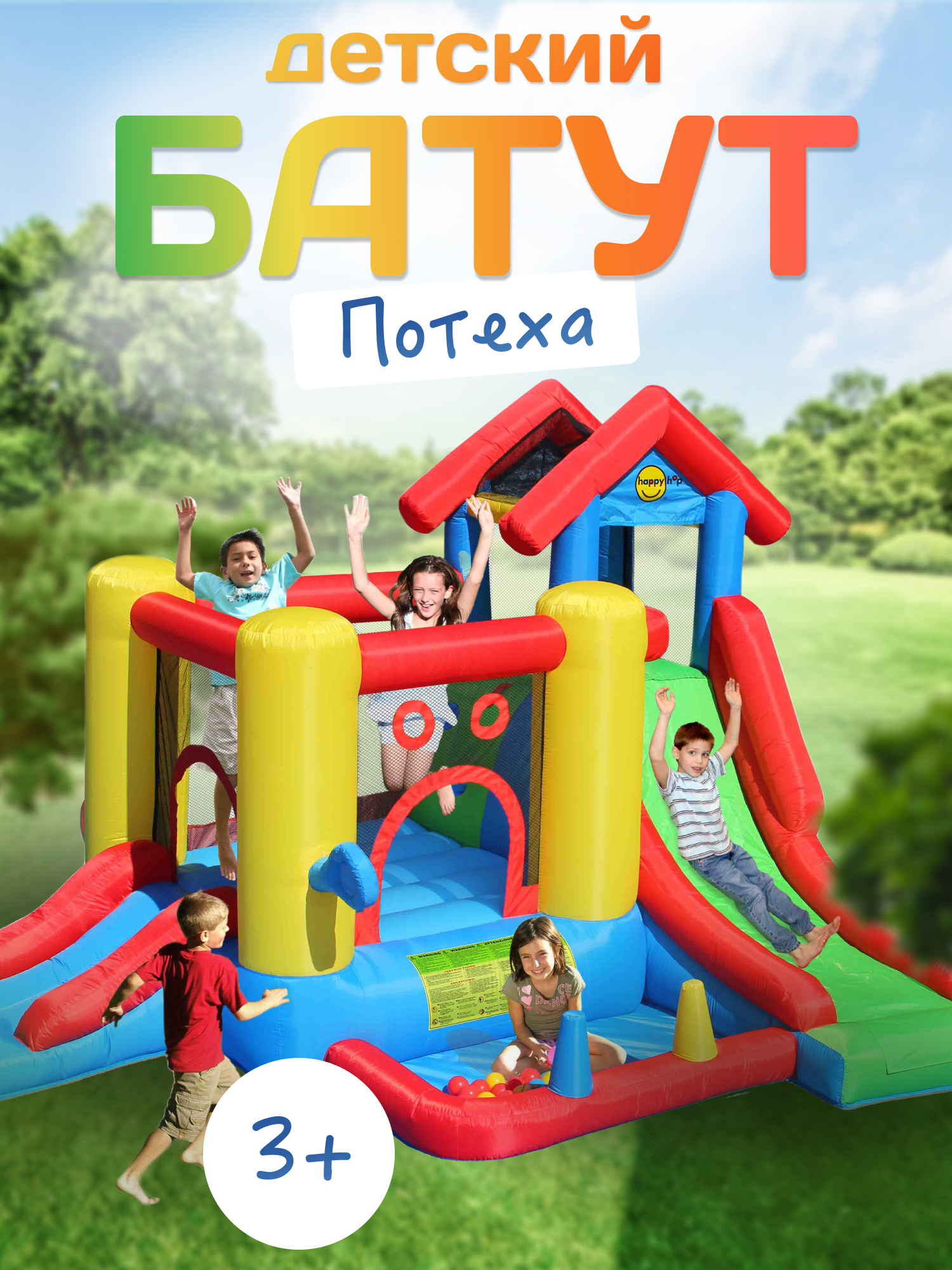 - Happy Hop Надувной батут с горкой Потеха 9019