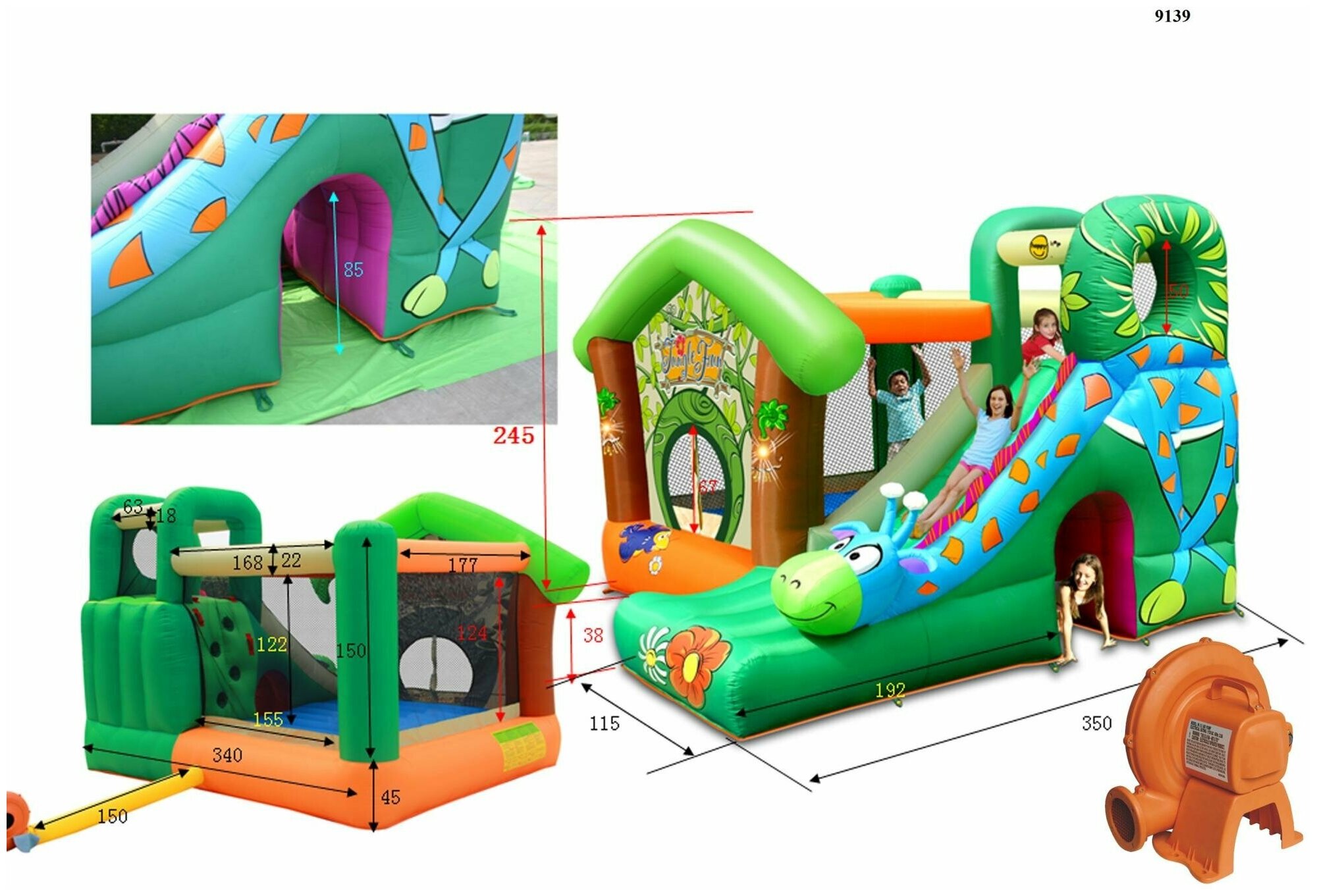 - Happy Hop Надувной батут с горкой Жирафик 9139