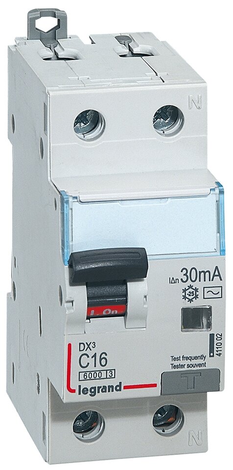 | Характеристики товара | Legrand DX? автоматический выключатель дифференциального тока Legrand DX? или ( Дифференциальный автомат ) реагирует на утечку переменного дифференциального тока, а так же на превышение значений номинальных токов.,,Номинальный ток - 16А. Отключающая способность - 6кА. Номинальный отключающий дифф.ток - 30мА (для защиты линий и групп устройств). Размер - 2 модуля DIN (35 мм). |