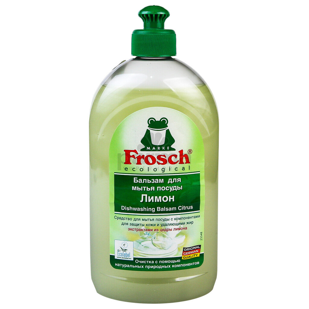 Лимонный бальзам для мытья посуды Фрош (Frosch) с помощью высокоэффективных биологических веществ из кожуры лимона натуральным образом удаляет жир и грязь. Не вредит коже рук, благодаря своей нейтральному коэффициенту pH. Содержащееся в составе косметическое вещество Аллатоин, благоприятно действует на кожу рук. Применение: 5 мл на 5 л воды. При сильном загрязнении использовать в неразбавленном виде.
