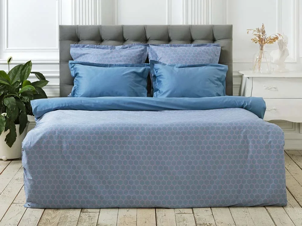 В комплекте пододеяльник на молнии, со срытым клапаном, с одной сторон из ткани с рисунком, с другой стороны однотонный. Наволочки оксфордские, с декоративными "ушками". Клапан на наволочках не менее 24 см. В комплекте предусмотрены 2 наволочки в цвет пододеяльника.