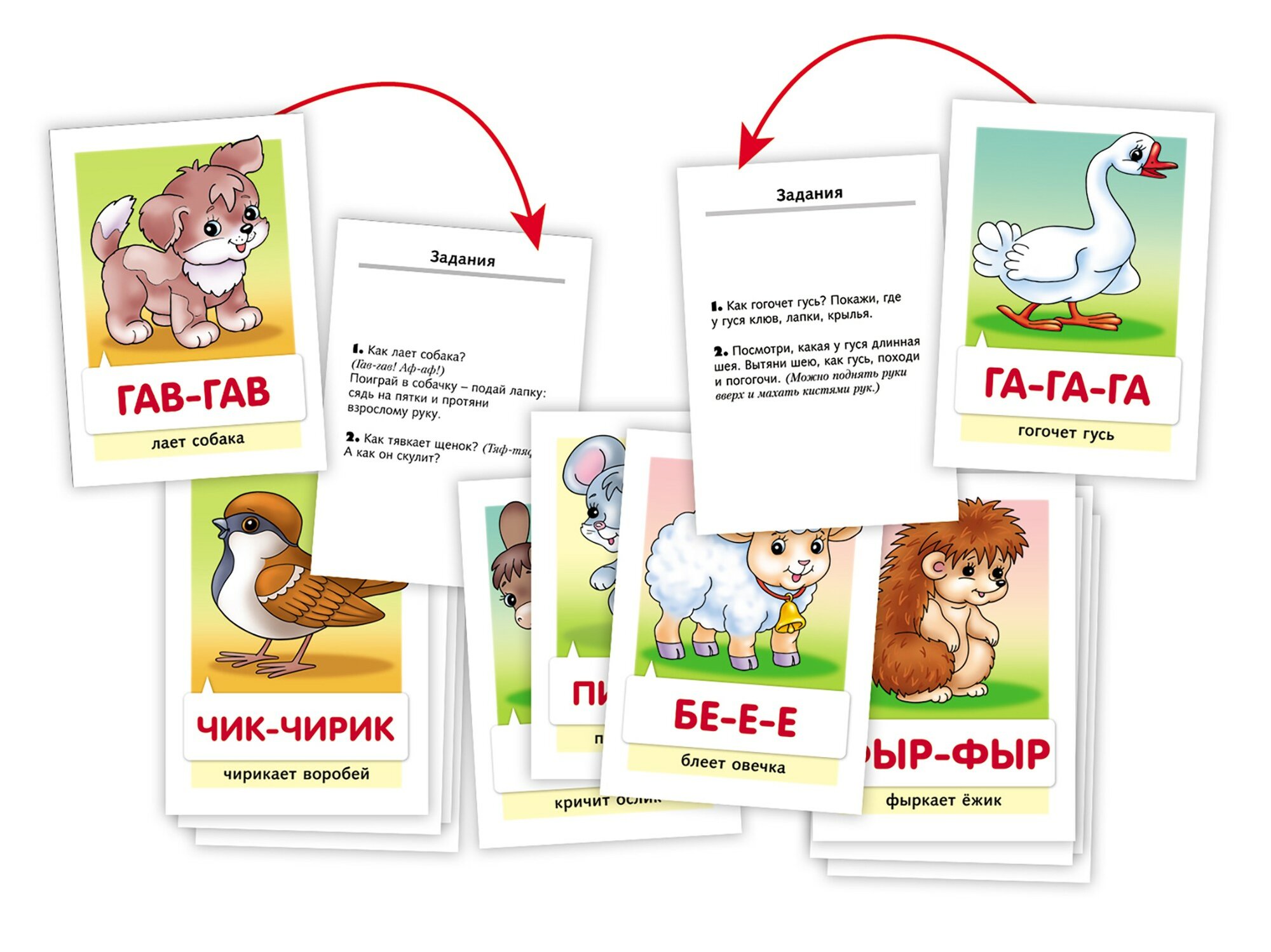 Набор развивающих карточек "Звукоподражание" подойдет для детей самого раннего возраста. Звукоподражания - это первые короткие слова малыша, которые отлично тренируют артикуляционный аппарат. Рассматривая изображения животных и предметов, узнавая, кто как говорит и что как звучит, ребенок знакомится с окружающим миром.Постепенно ребенок начинает повторять знакомые звуки, шаг за шагом осваивая речь.