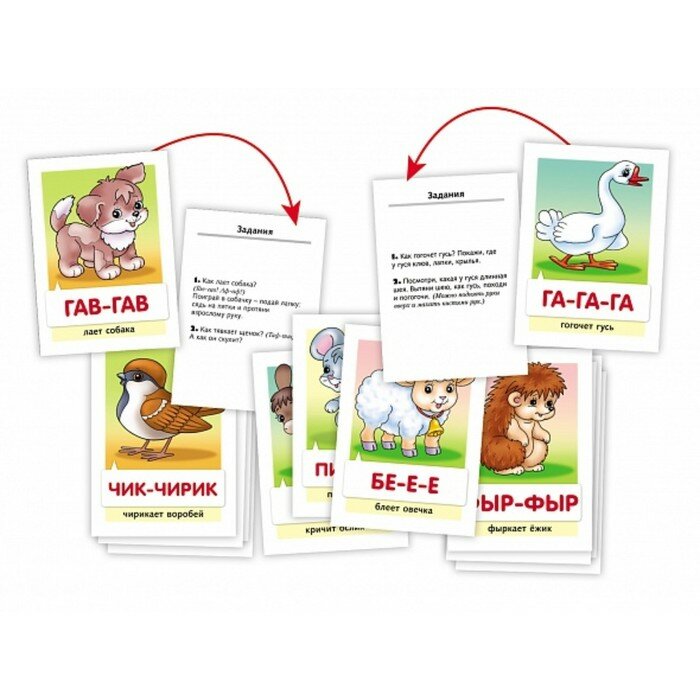 В комплекте 32 карточки с яркими иллюстрациями. На обратной стороне каждой карточки размещены игровые задания, которые помогут взрослым провести эффективные и интересные занятия с детьми.