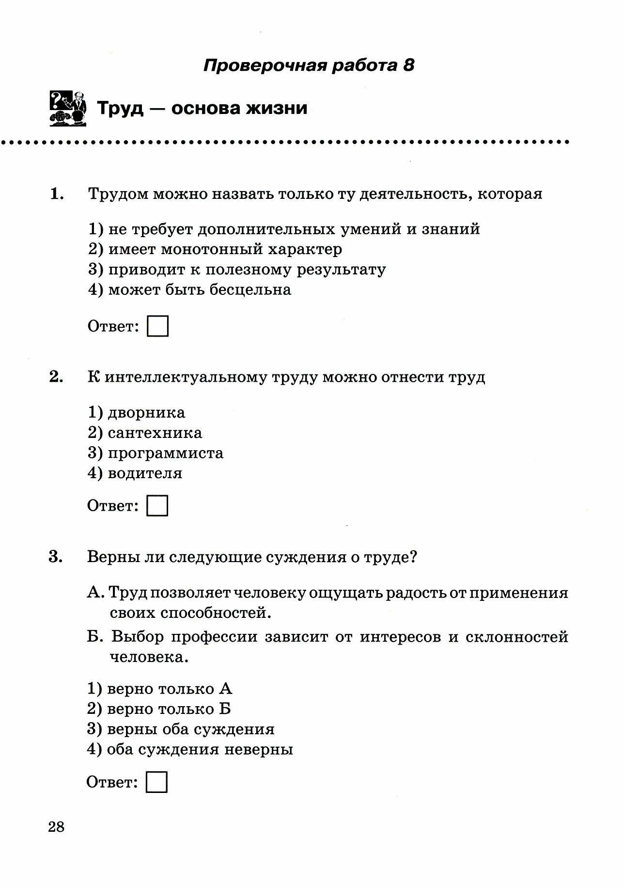 Пособие включает проверочные работы по обществознанию, которые соответствуют содержанию и структуре учебника Л. Н. Боголюбова и др. "Обществознание. 6 класс" (издательство "Просвещение"). Задания можно использовать для обучения и самоконтроля учащихся, проверки домашних заданий, текущего и итогового контроля. Ко всем заданиям даны ответы.