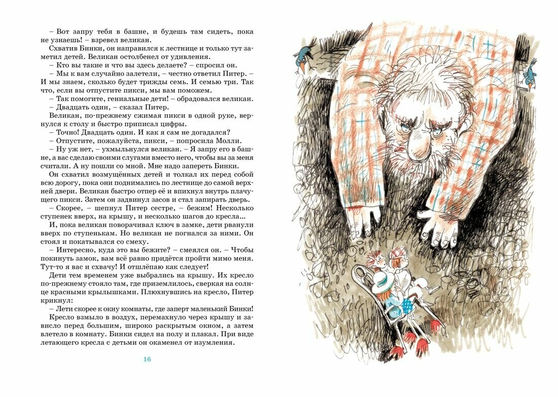 У Молли и Питера – главных героев книги – появилась тайна, самая удивительная и чудесная тайна на свете! В их игровой комнате стоит волшебное кресло, которое в любой момент может отрастить крылышки и перенести своих юных хозяев, куда только они пожелают! Дети посетят замок великана и Исчезающий остров, побывают в гостях у волшебника Хо-Хо и у колдуньи Сниппит… Много-много всего интересного и удивительного ждёт их! А путешествовать Молли и Питер будут вместе со своим замечательным другом – смешным и добрым пикси по имени Бинки.
